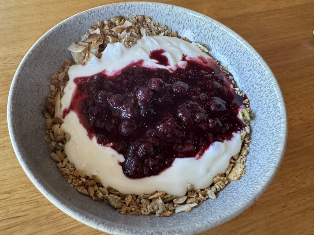 We then help ourselves to the granola, yoghurt and berries from the continental breakfast, which is quite good: