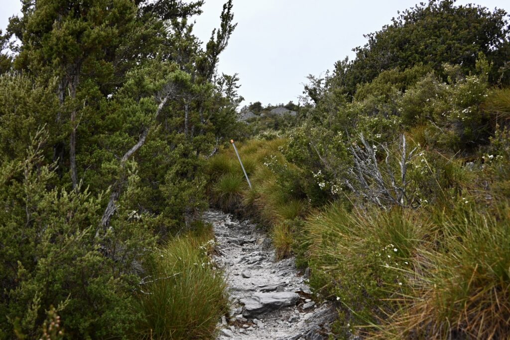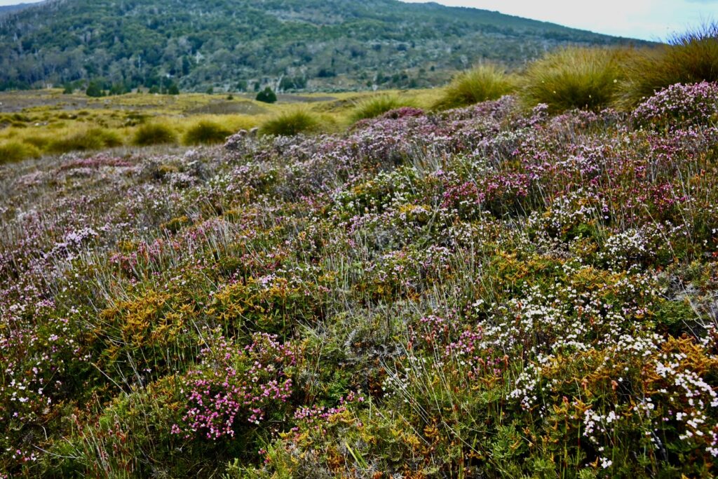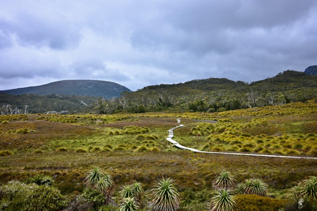The Ronny Creek trek is open and scenic – open plateaus, button grass and wildflowers: