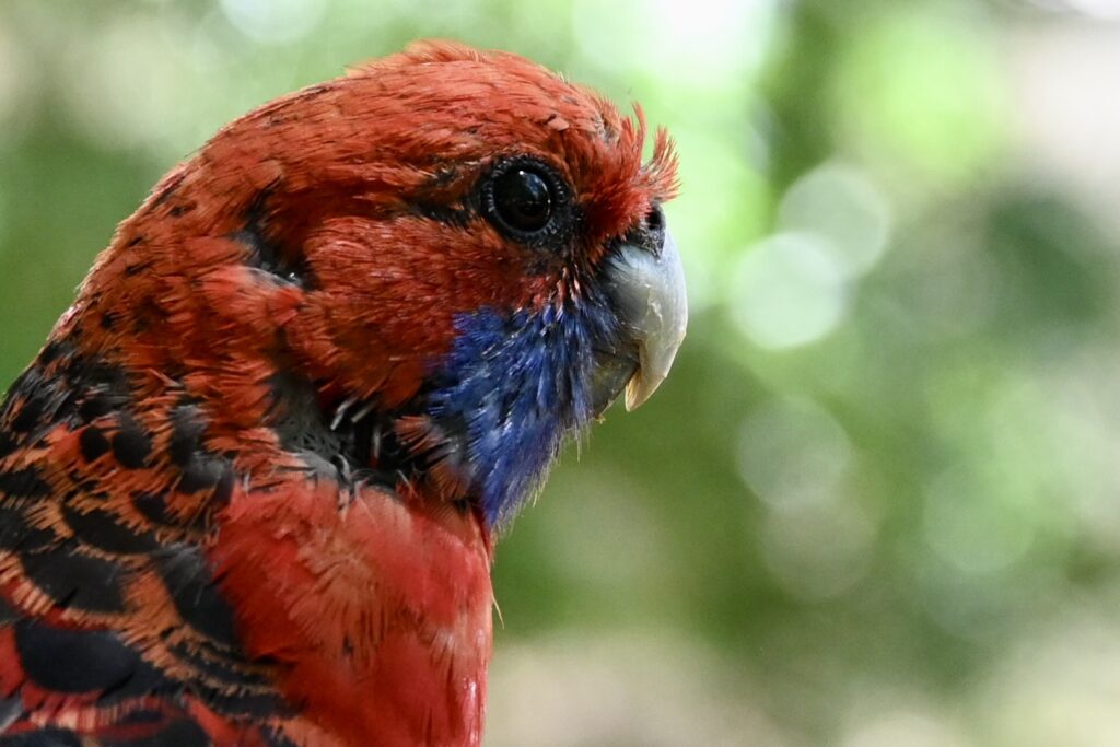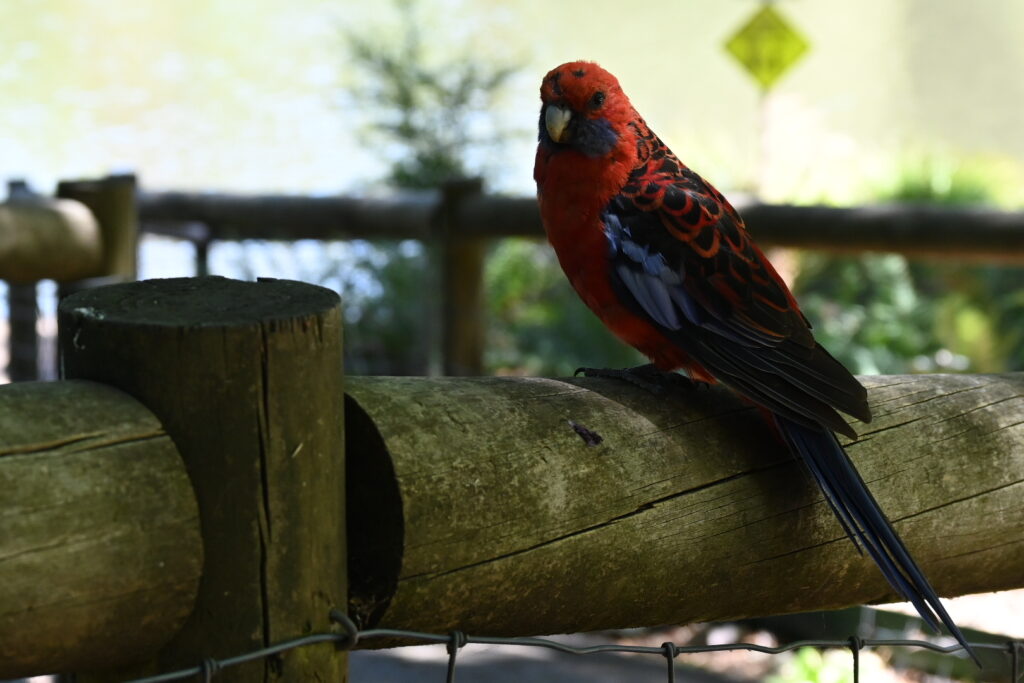 While hanging out, we are on the receiveing end of some attention from a crimson rosella, a type of endemic Australian parrot:
