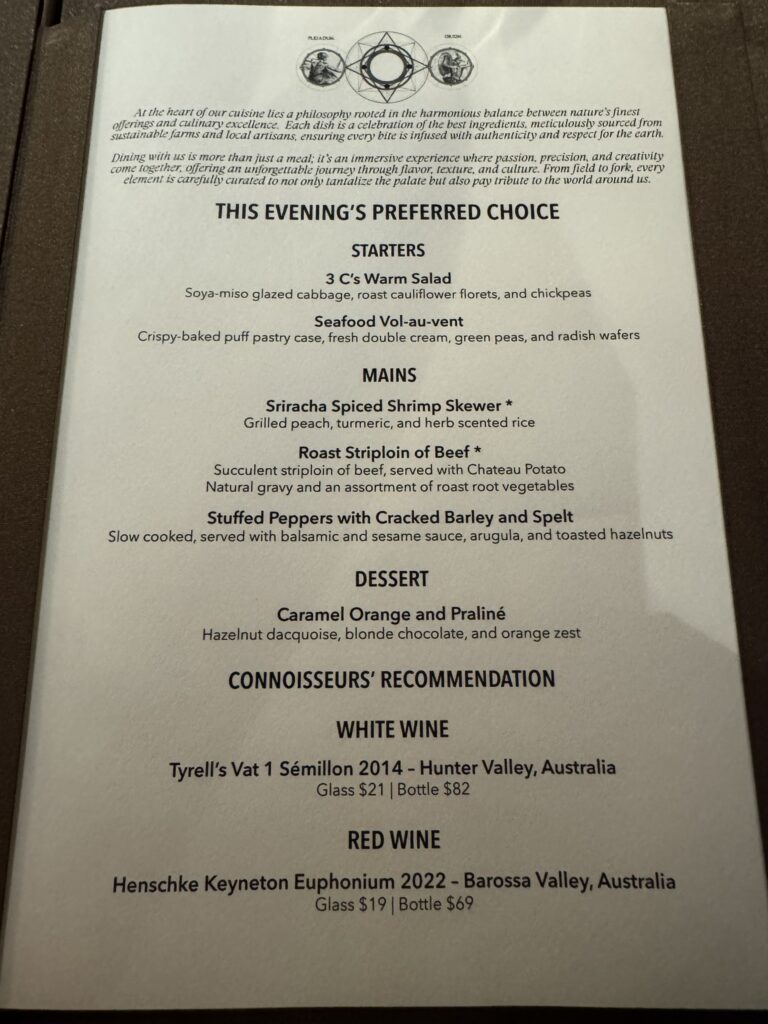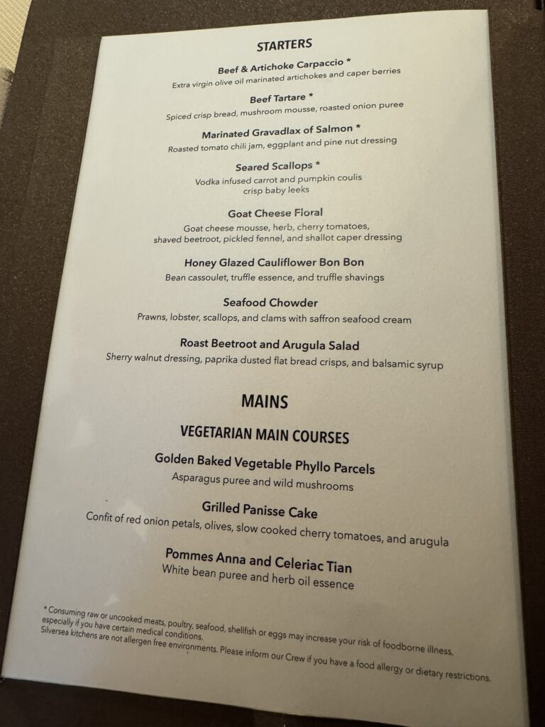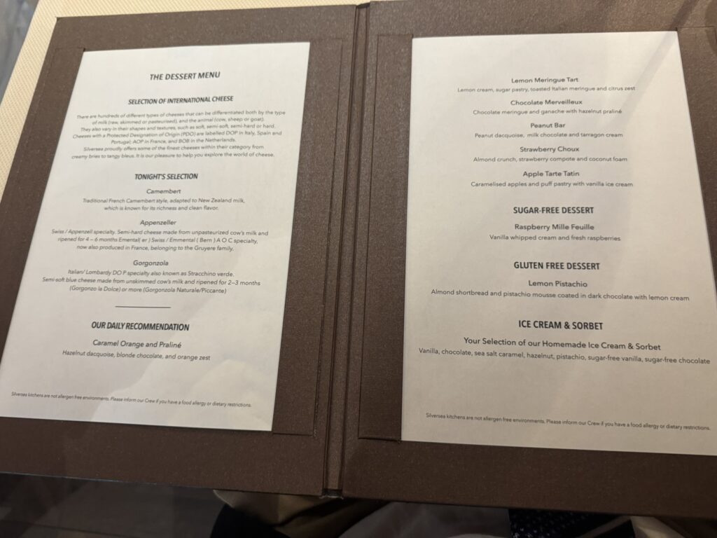 It’s a fabulous meal. Service slows a bit when we get to dessert, but that’s not surprising given that most people are still waiting for their mains at that stage. We’re still out of there in a little over 90 minutes, which is brisk by Silversea standards.