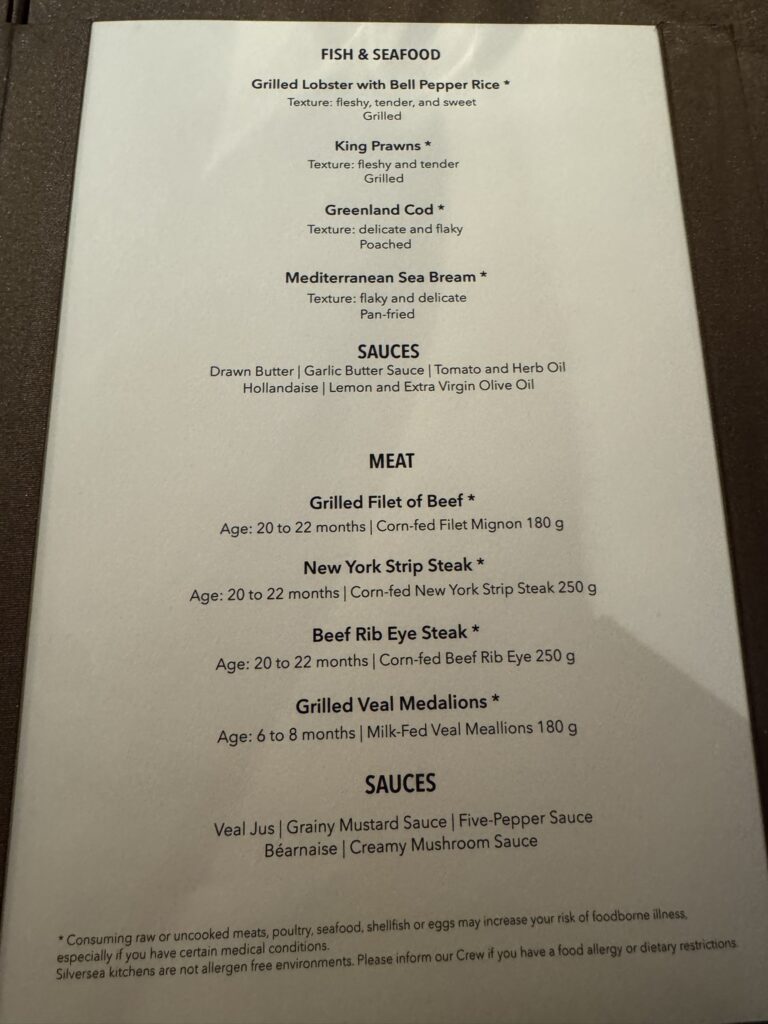Also, the quality of the food is definitely a step up when compared to the Restaurant on both the Wind and the Cloud – not a knock against the staff on either of those vessels, they simply don’t have the provisioning, space or staff of a classic ship.