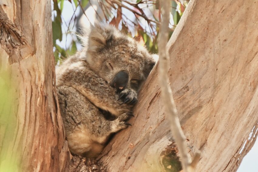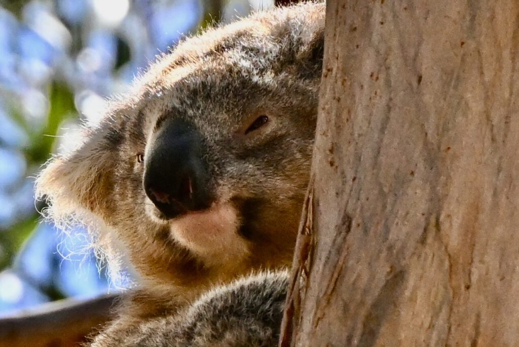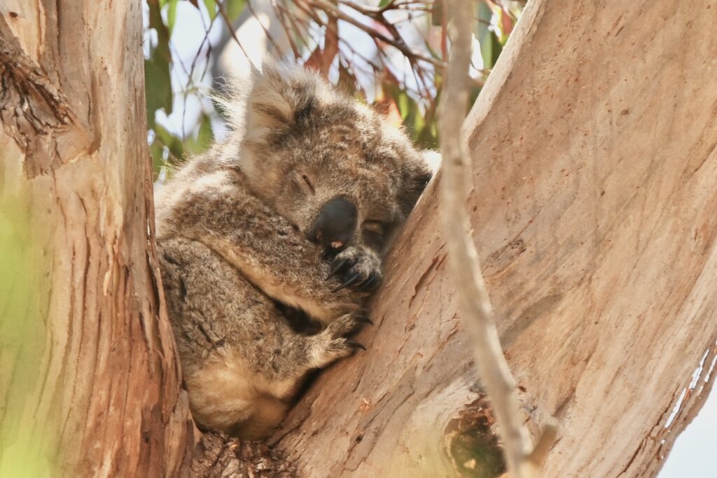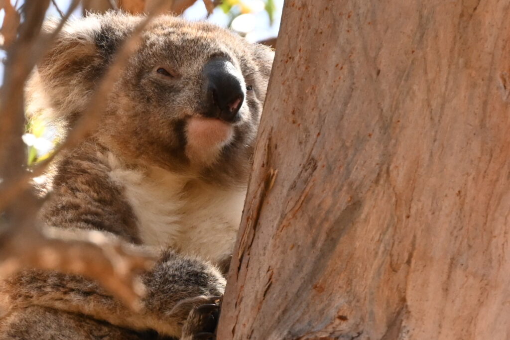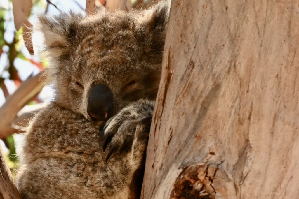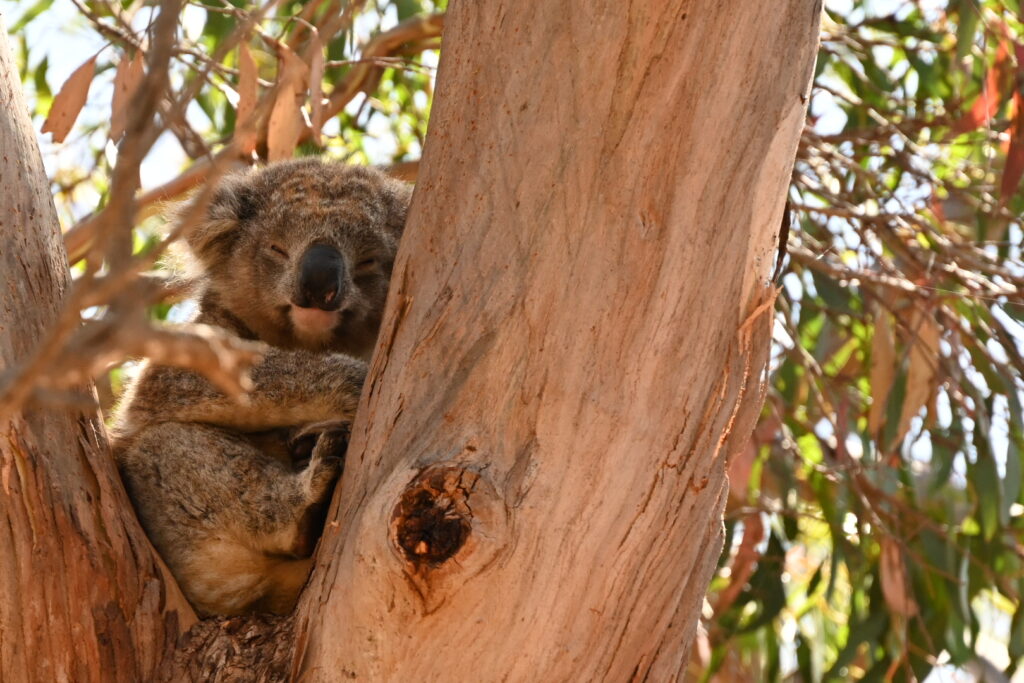 But first we stop at “Phil’s tree” to see if we can find a koala. And we do!