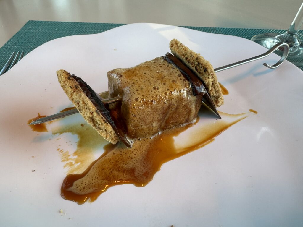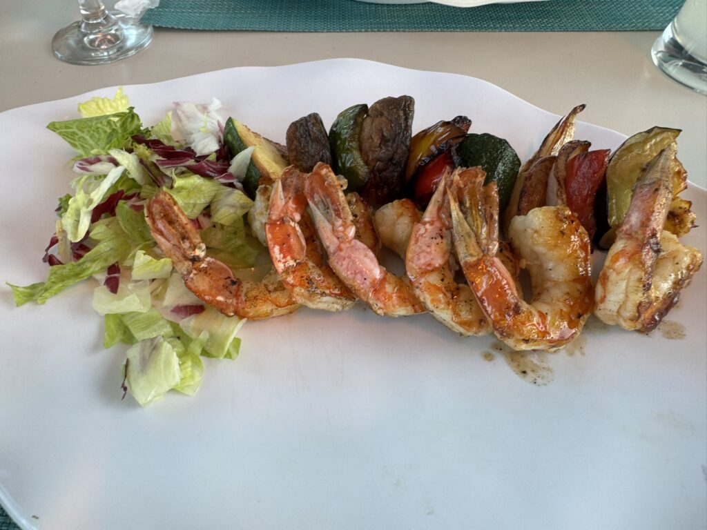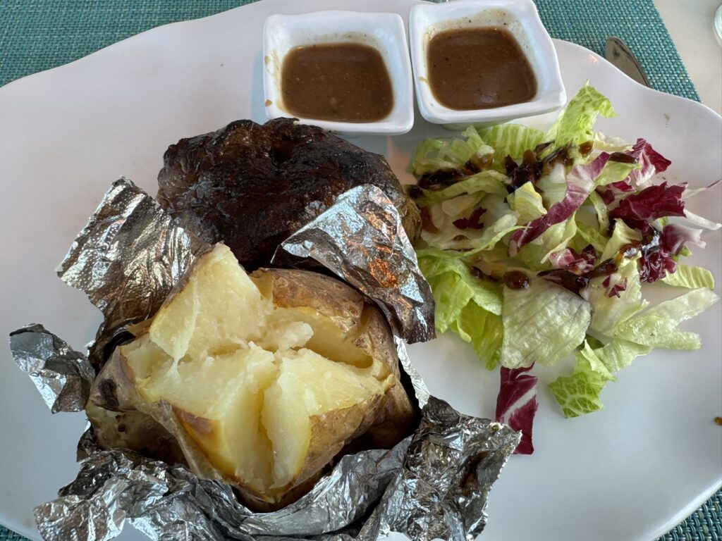 This meal is moderately less impressive than our previous meals aboard the Moon. We’re seated in the very far corner of the Grill, and so service is mildly pokey. They also miss including prawns with both mine and my daughter’s filets.