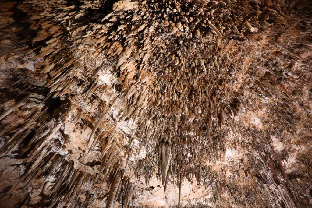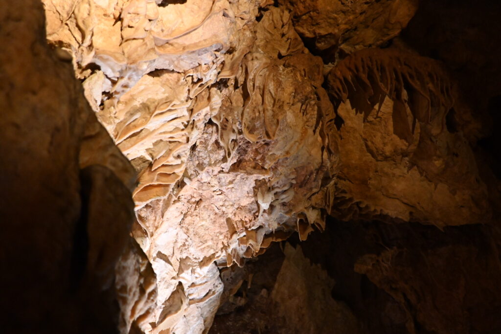“Inside the caves, you’ll find intricate natural features known as speleothems (pronounced spe-leo-thems). These formations include straws, stalactites, stalagmites, columns, shawls, helictites, and flowstone. All speleothems are made from calcite, a crystalline form of calcium carbonate.