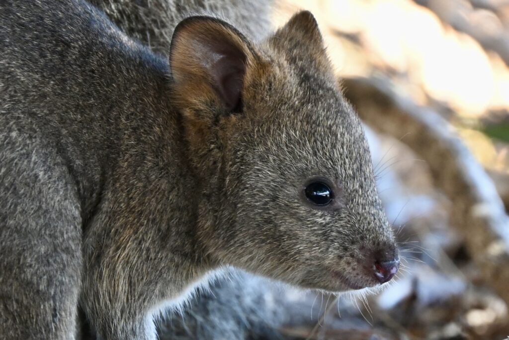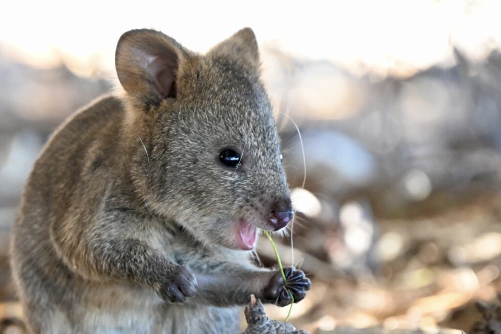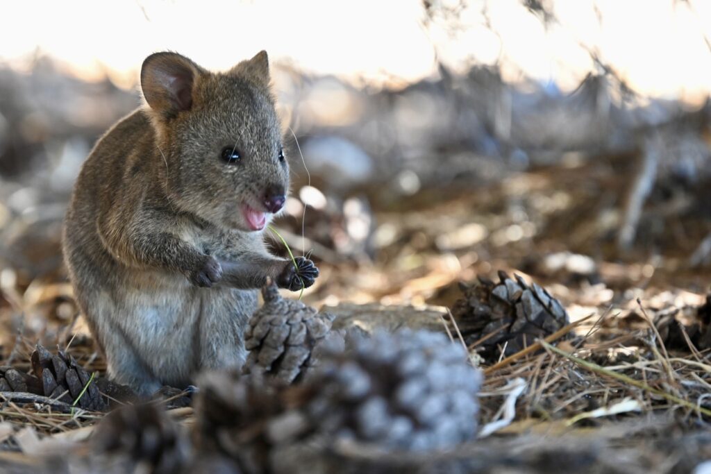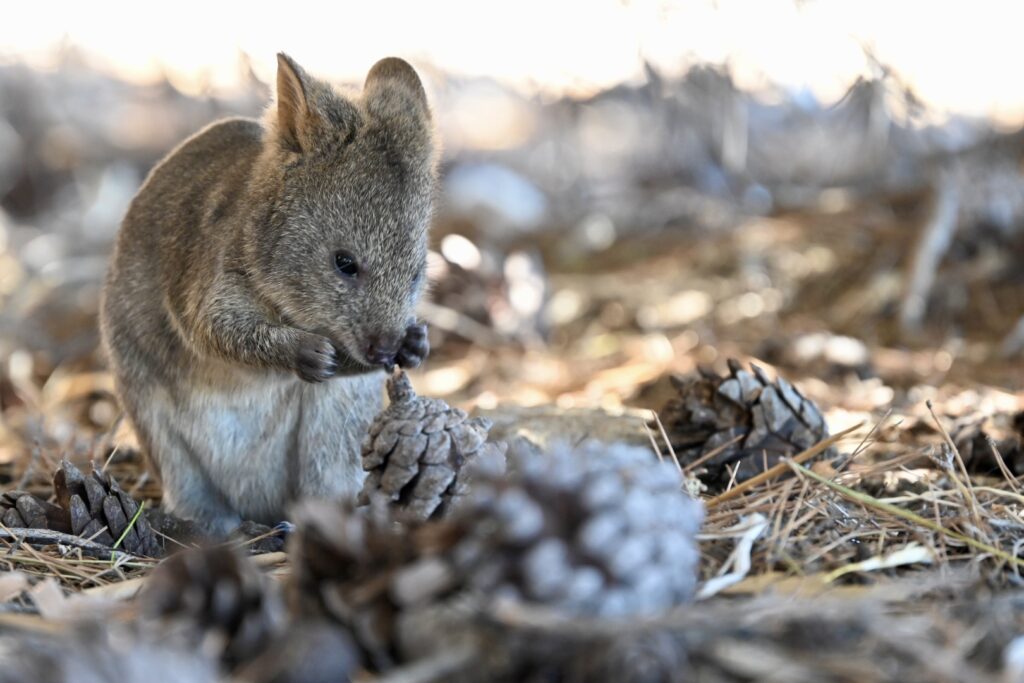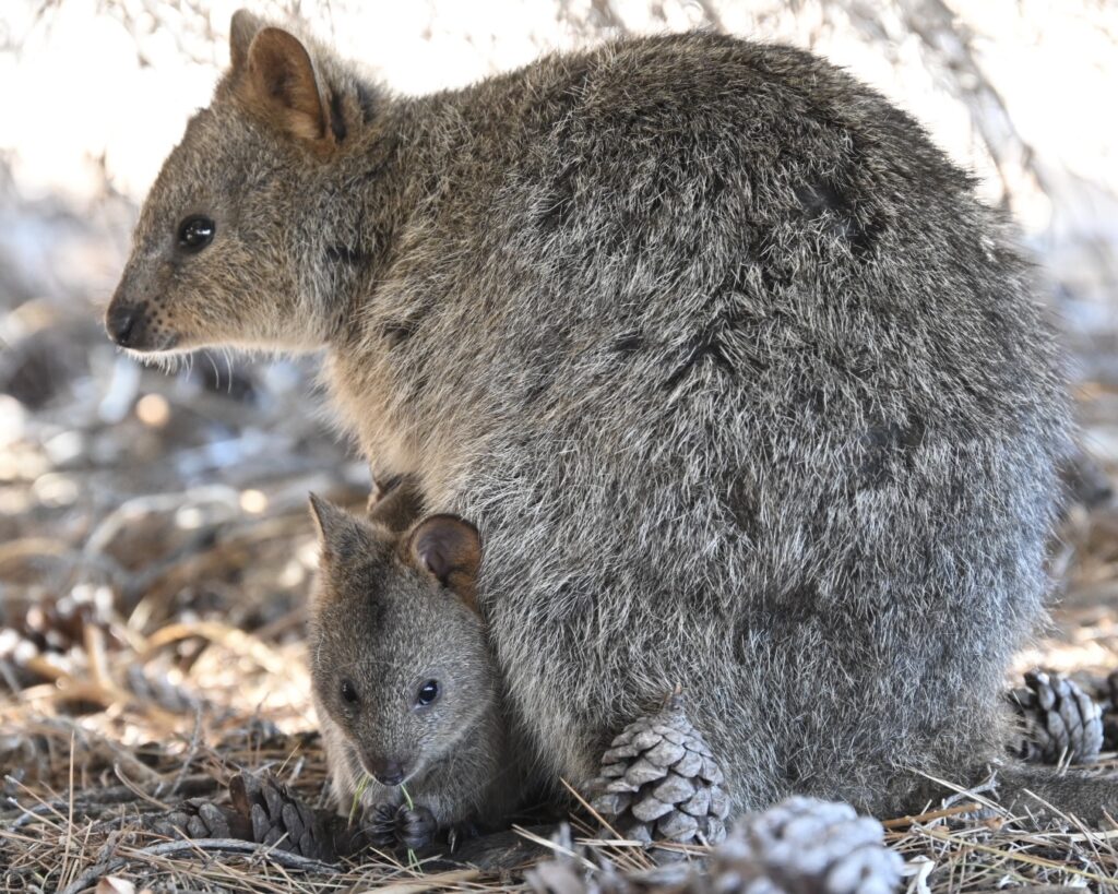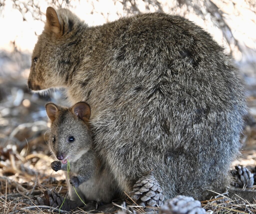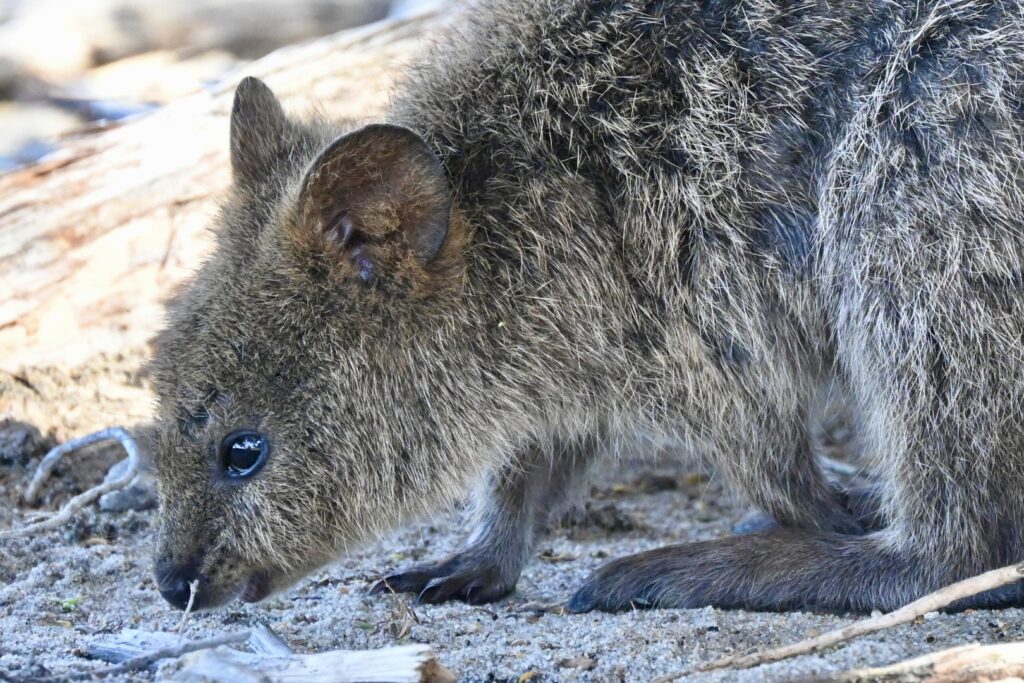I’m headed toward a nearby tree to rearrange my backpack when my wife points out the quokka underneath it. One more quick photoshoot: