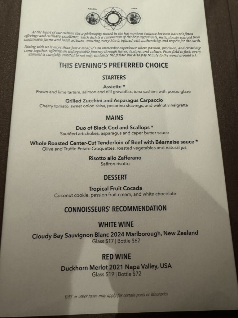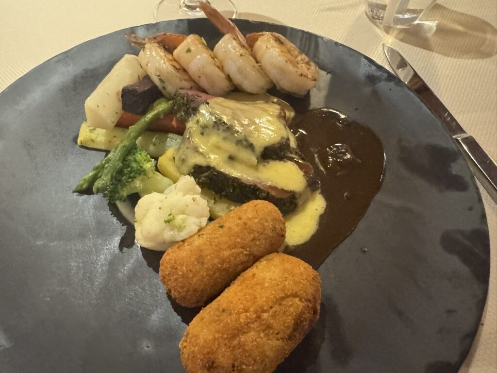 And my wife has the same, minus the prawns. It’s perhaps one of the finest meals we’ve ever had on Silversea. Absolutely delicious, and the beef is unbelievably tender.