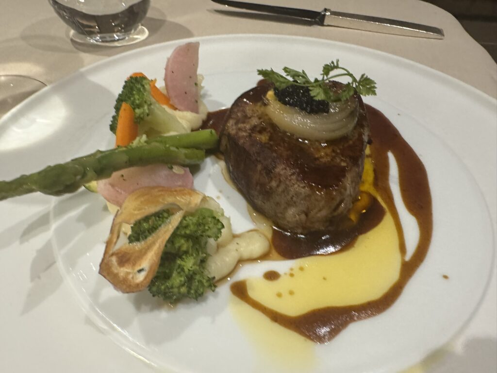 One small misstep as the kids are given small portions of the beef filets – we had thought they were only doing small portions of the bisque, and not the rest of the meal – but this is quickly rectified. A fabulous meal, though a lot of food as always.