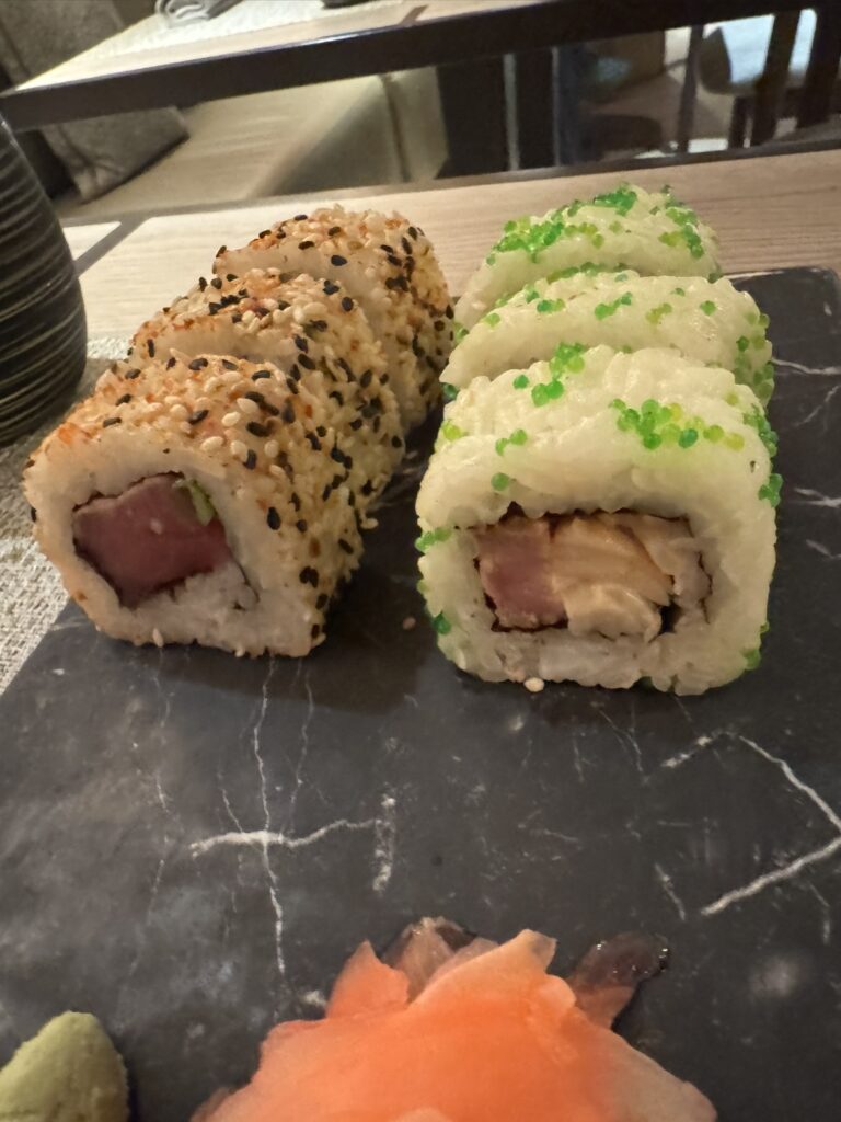 Our daughter also wants to try the ‘surf and turf’ roll next time – with seared wagyu beef and lobster, as on the right.