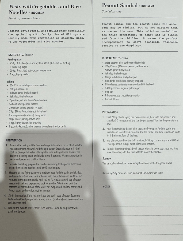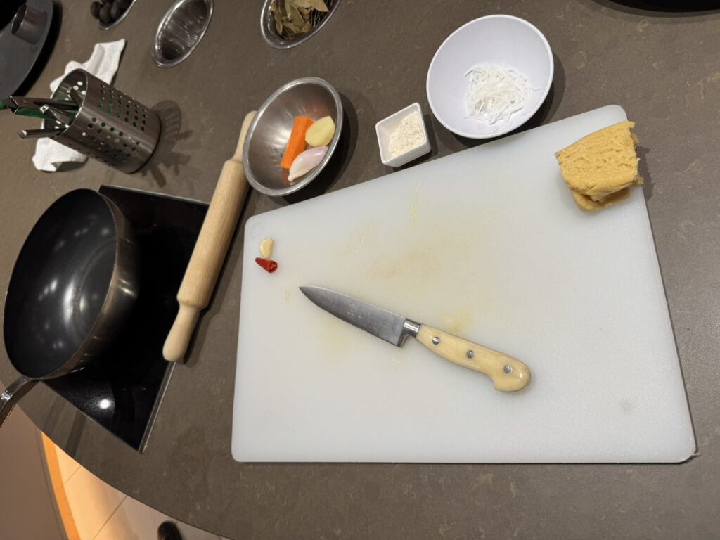 Next we head to the SALT Lab for our lesson on Indonesian street food, specifically a pasty with vegetables and rice noodles served with a peanut sambal sauce. Today’s ingredients: