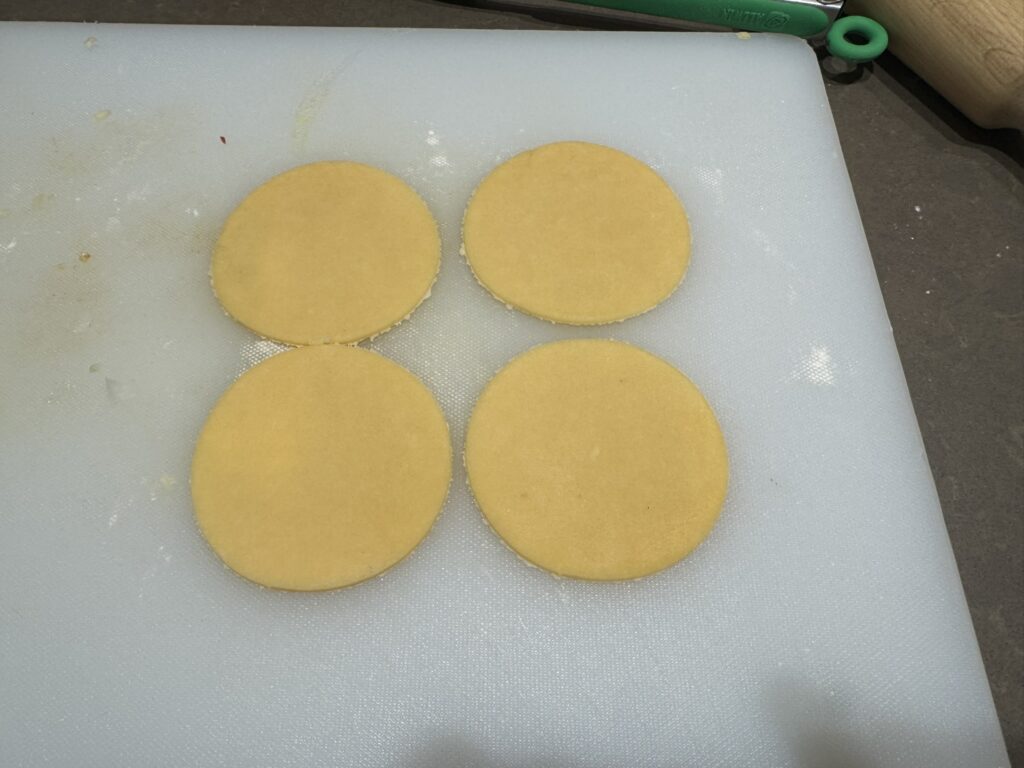 The dough gets rolled out to a 2 mm thickeness, and shapes are cut into it.