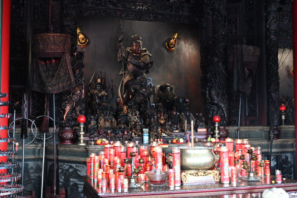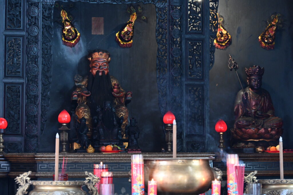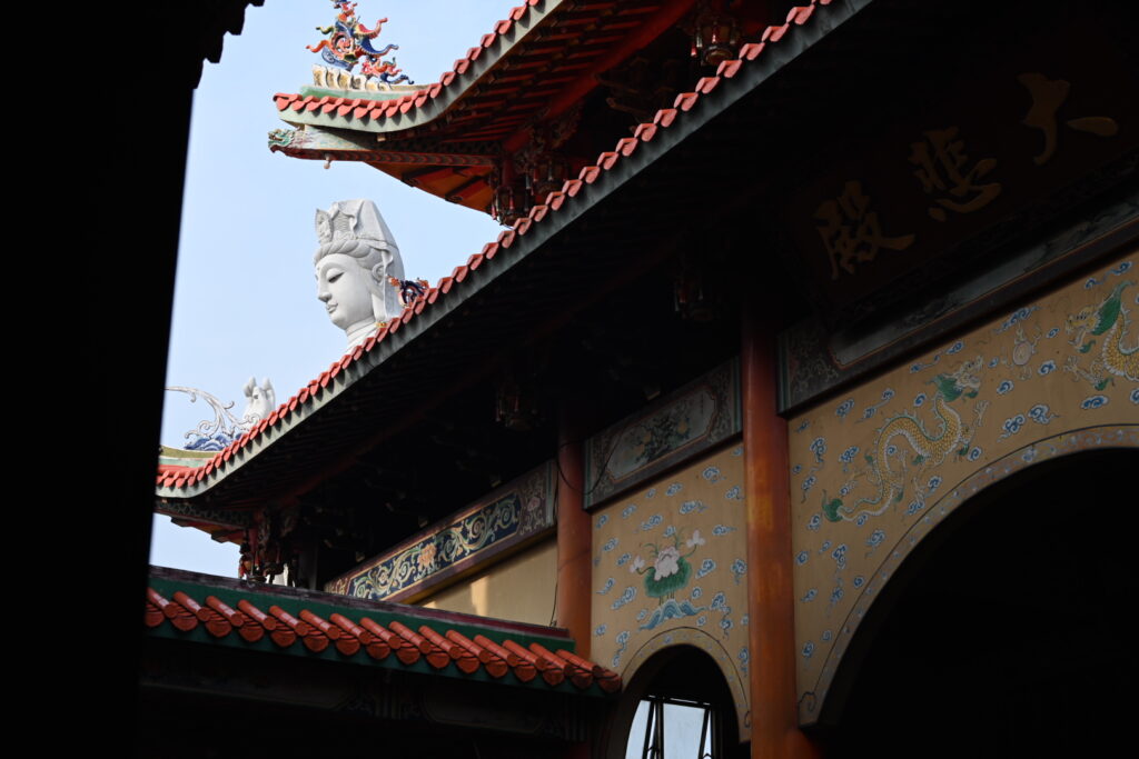 Our first stop is the Satya Dharma Temple, just on the outskirts of Benoa. It’s a Chinese temple, the main deity of which is Tian Shang Sheng Mu – the goddess with the ability to calm the sea. The god Nezha – the god of protection – also features prominently.