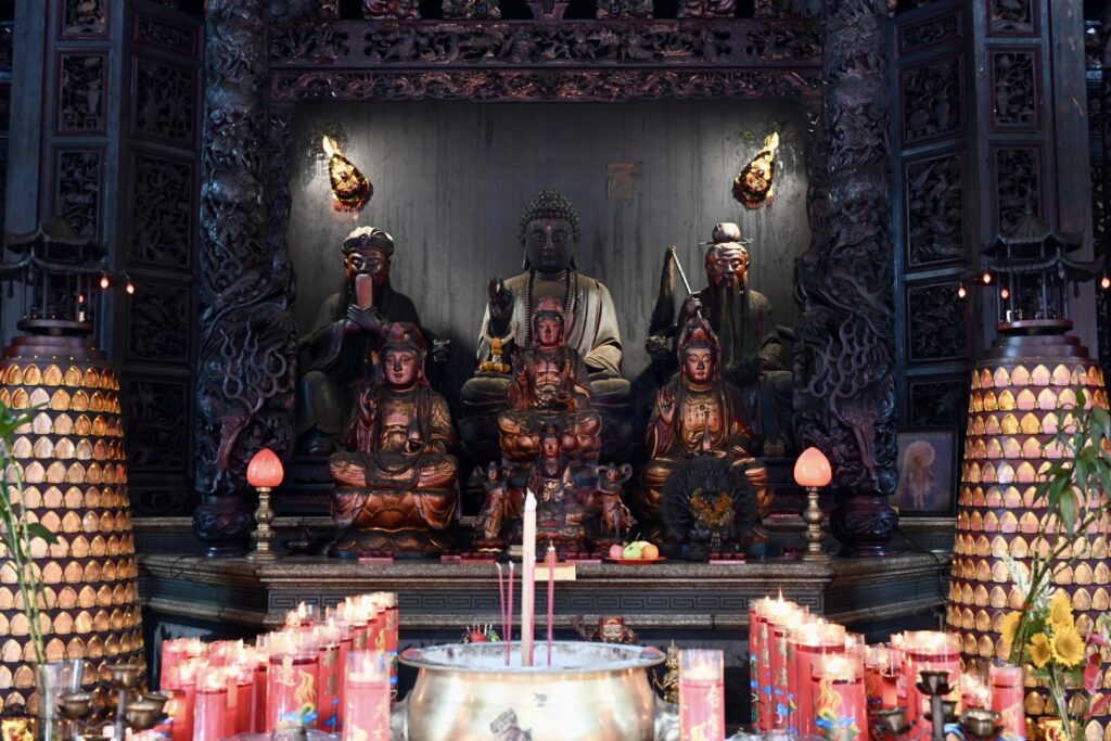 There are worshippers at the site, lighting incense. We do our utmost to stay out of their way and observe at a respectful distance.