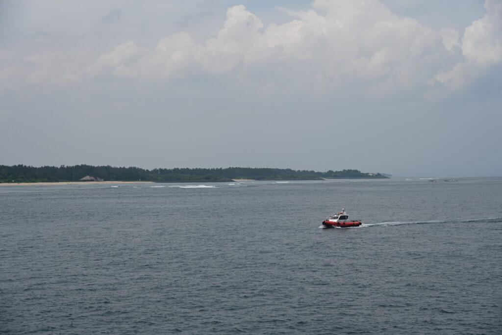 The ship’s internet holds long enough for my video call, and then we pack up and head out. We bring rain coats in the event of sudden showers, but otherwise it’s our standard loadout – water, cameras, sunglasses, hats, sunscreen, and quiet voxes.
