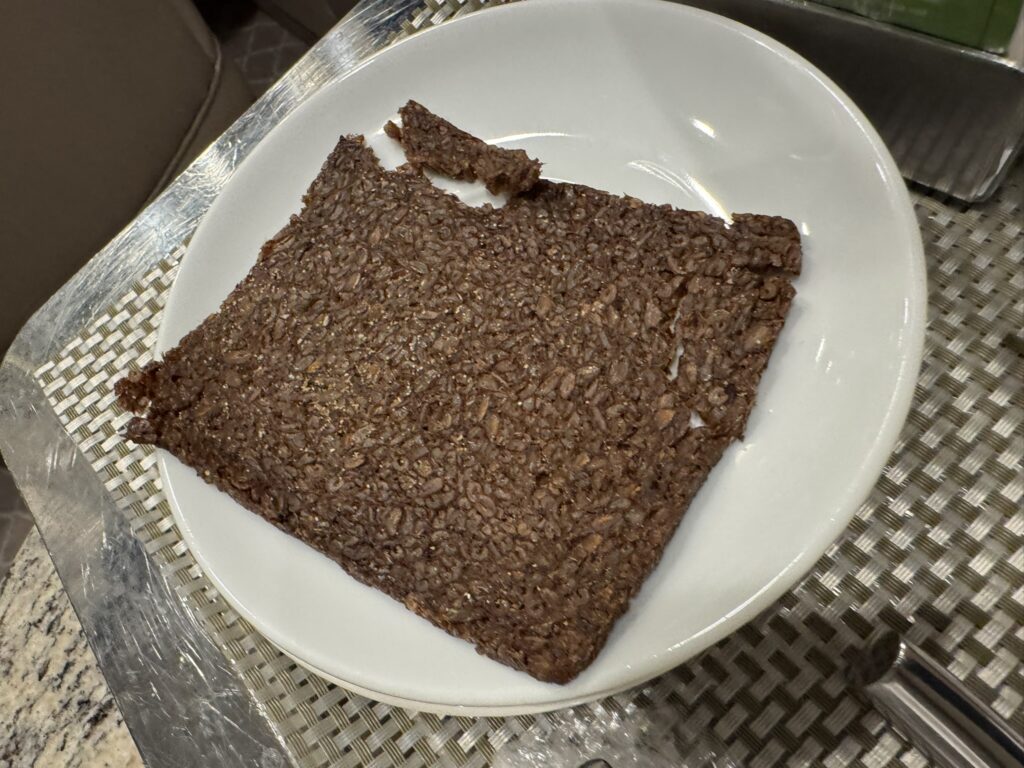 La Terrazza doesn’t open until 7 am this morning and we have to be walking out the door at 7:30 am, so we’ve elected for room service instead. I attempt to break the Curse of the Ever-Stale Bread by ordering pumpernickel.