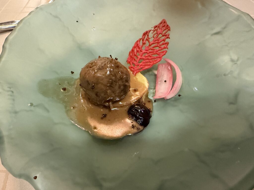 It’s formal night, and we have dinner at the Silver Note tonight. We’ve dialed in our choices from last time, and I order the duck confit for my appetizer: