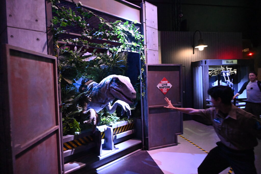 Passing through an interactive dinosaur show: