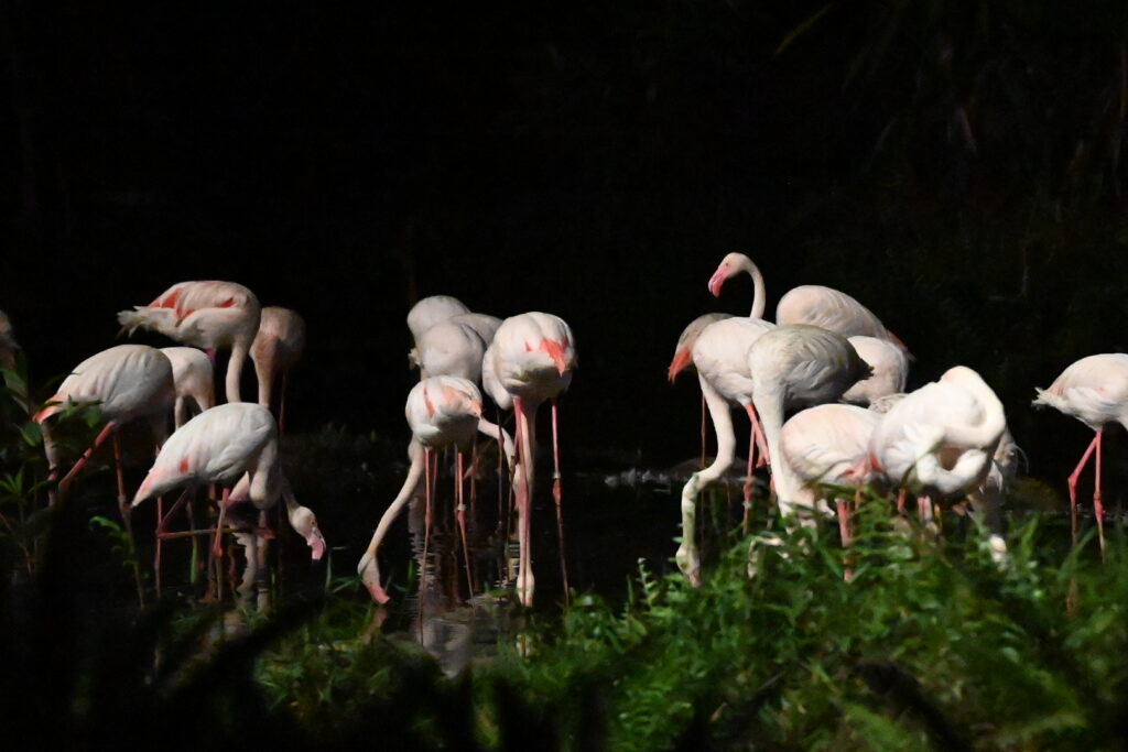 We see flamingos: