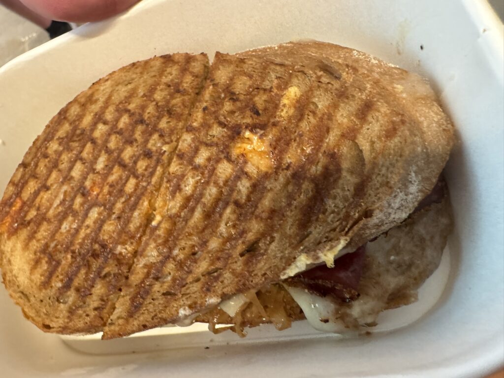 It’s expensive – roughly S$30 for two croissant, a sandwich and a coffee – but should be enough to tide us over.