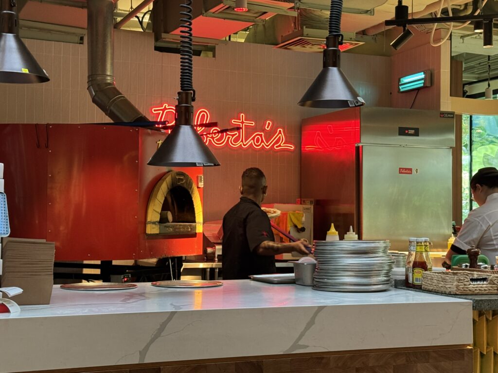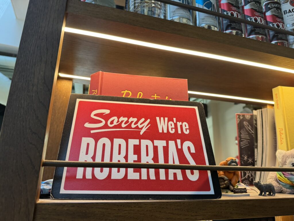Lunchtime – we visit Roberta’s Pizza on the way into the park.