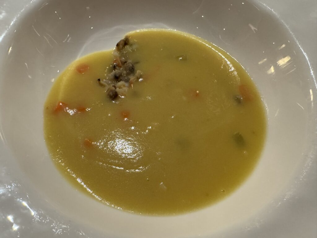 I get the seafood chowder to start:
