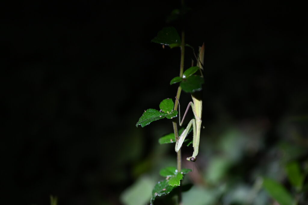 We follow it up with a very brief night walk in which we spot a praying mantis: