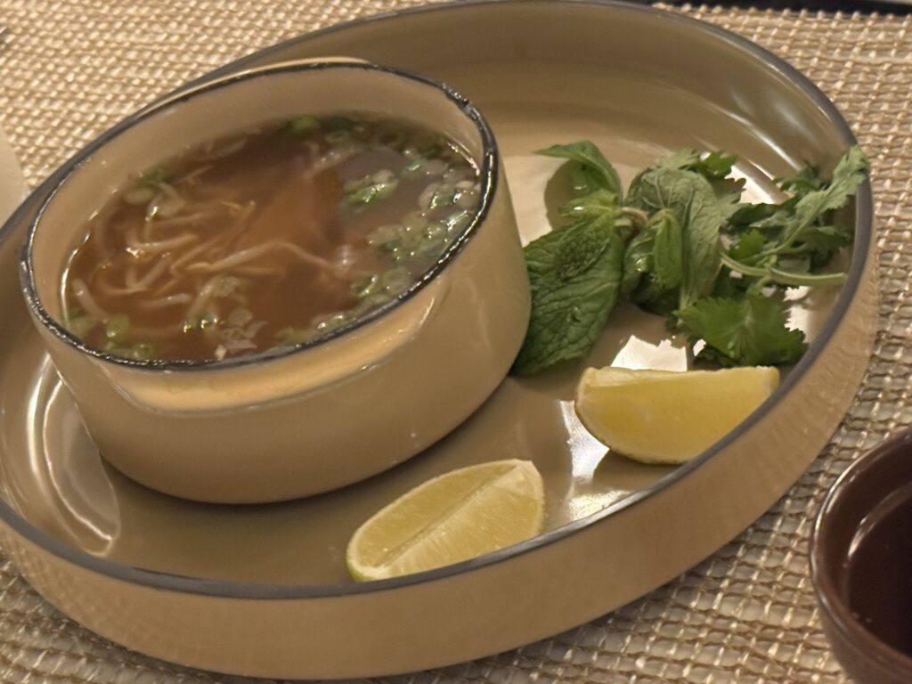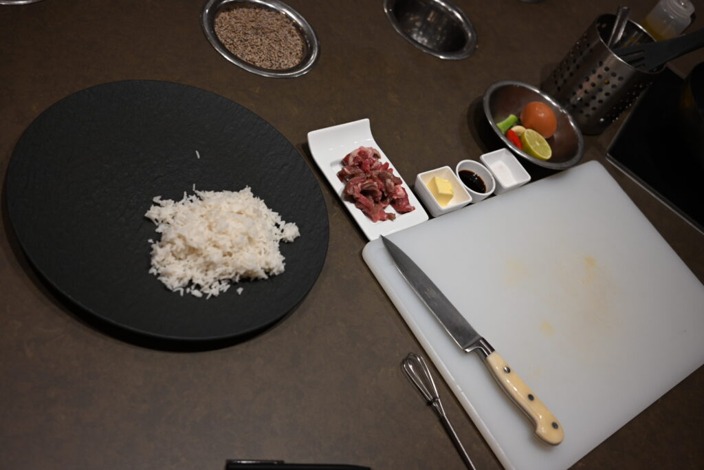 Our usual lunch routine – La Terrazza for my wife and son, Kaiseki for myself and our daughter – followed by a cooking class. We’re making Vietnamese drinking food, which means preparing Bò Lúc Lắc, also known as shaking beef: