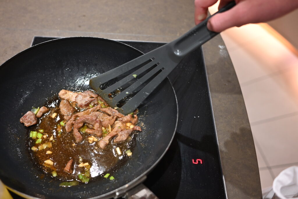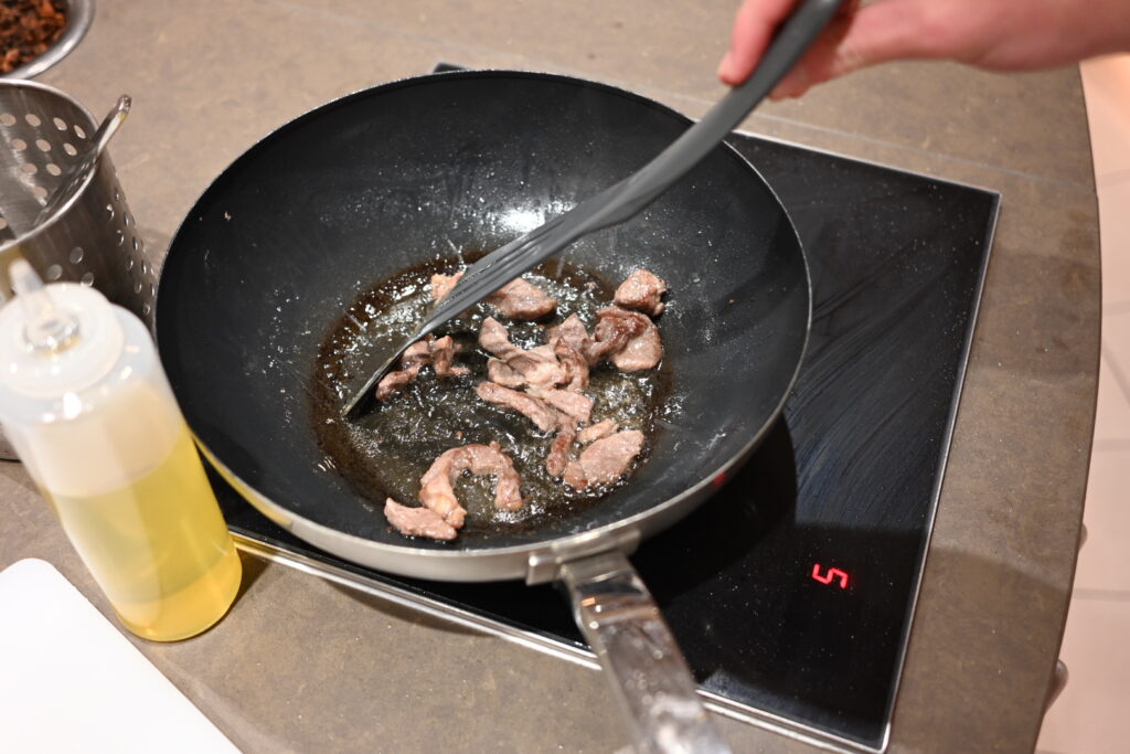 Then we stir-fry the beef: