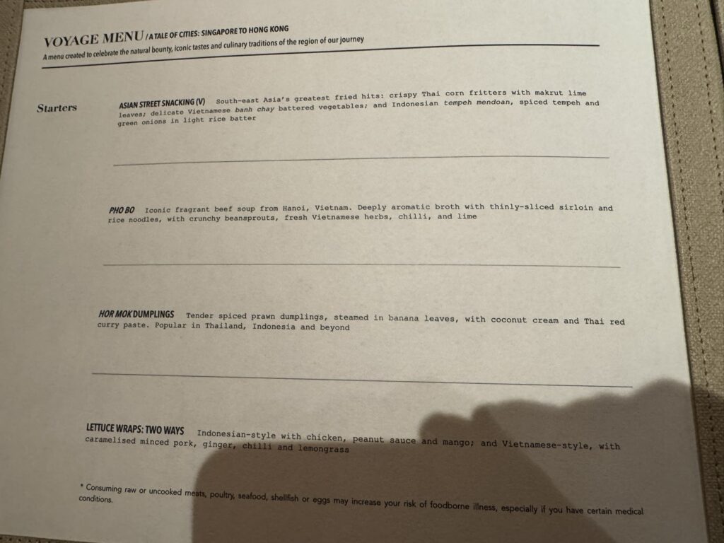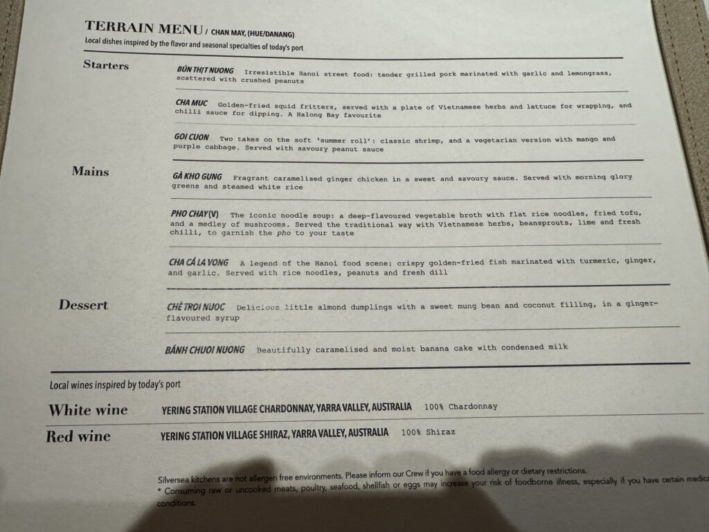 It is now incredibly late, and we have an early start in Ha Long Bay tomorrow. We will be doing one of Silversea’s included excursions – going on a junk boat tour of Ha Long Bay and visiting Thien Cung cave, weather permitting.