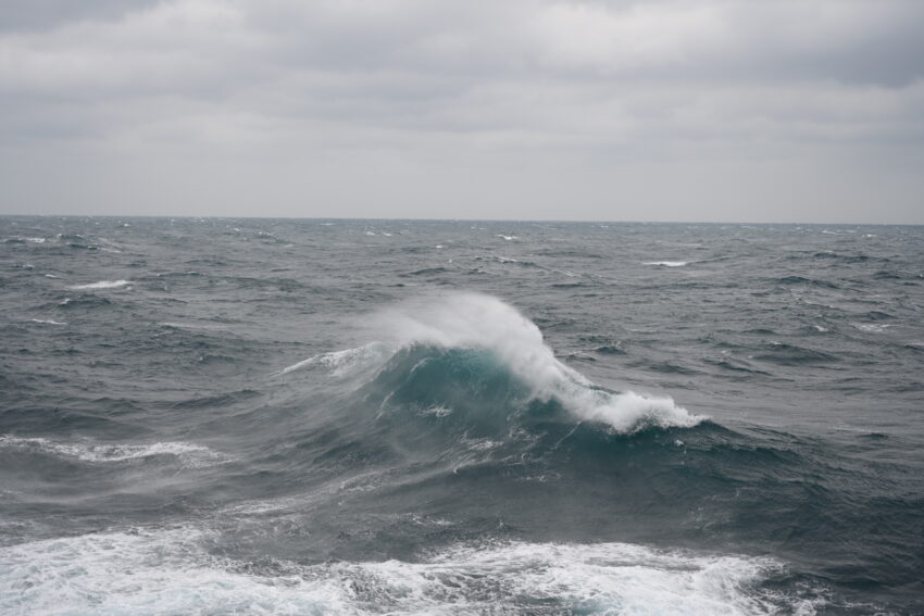 On the subject of firsts, it’s also the first time since Australia that the sea state has been worth remarking upon – we are at a healthy 3 1/2 metres, which means that the view out our balcony looks something like this:
