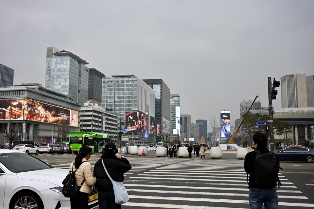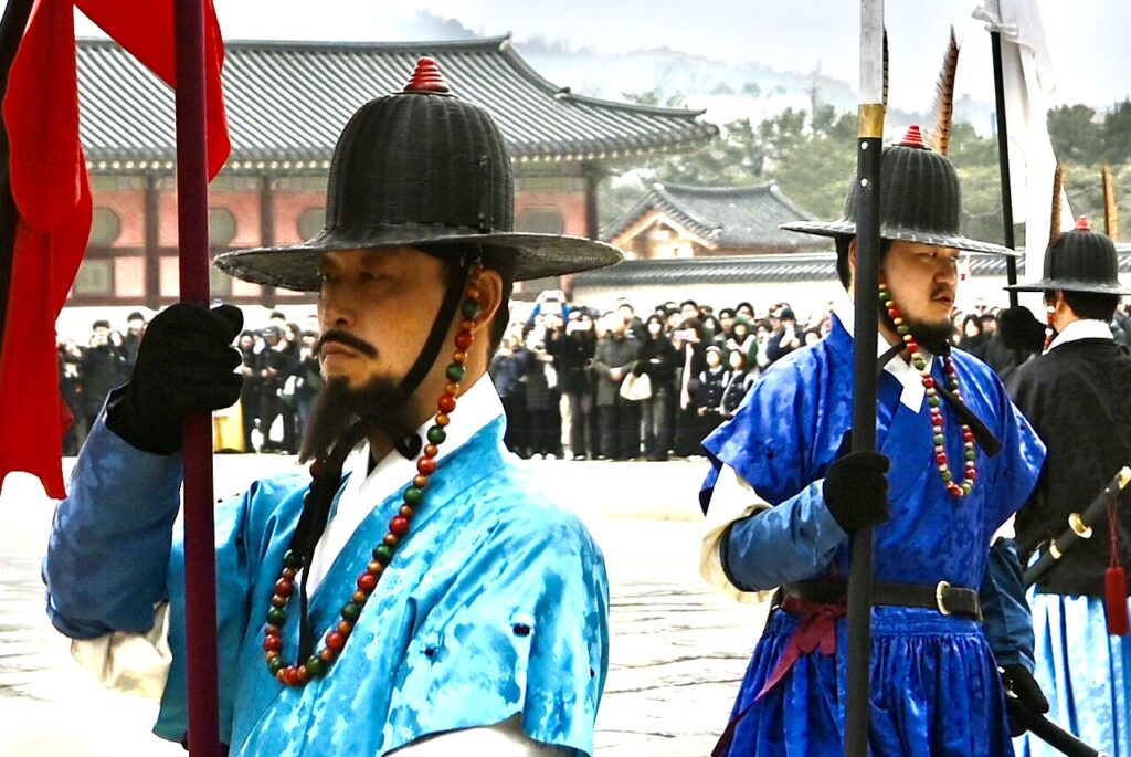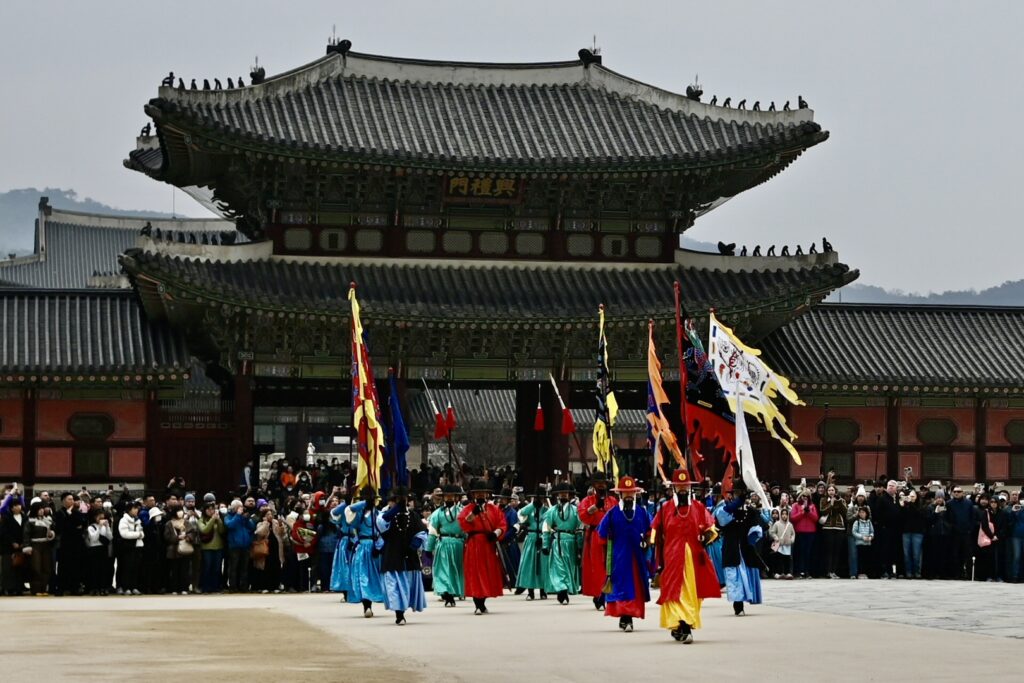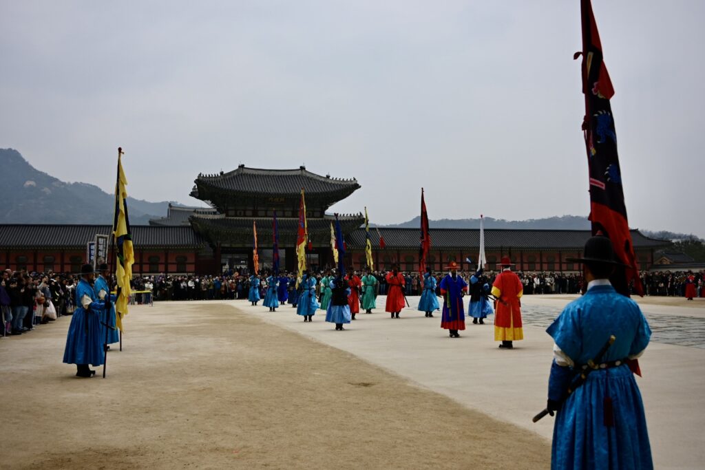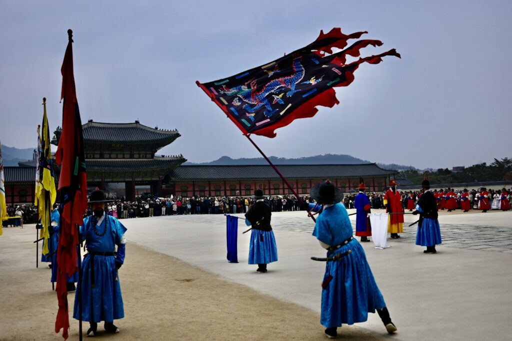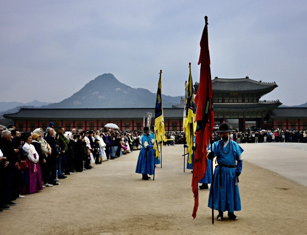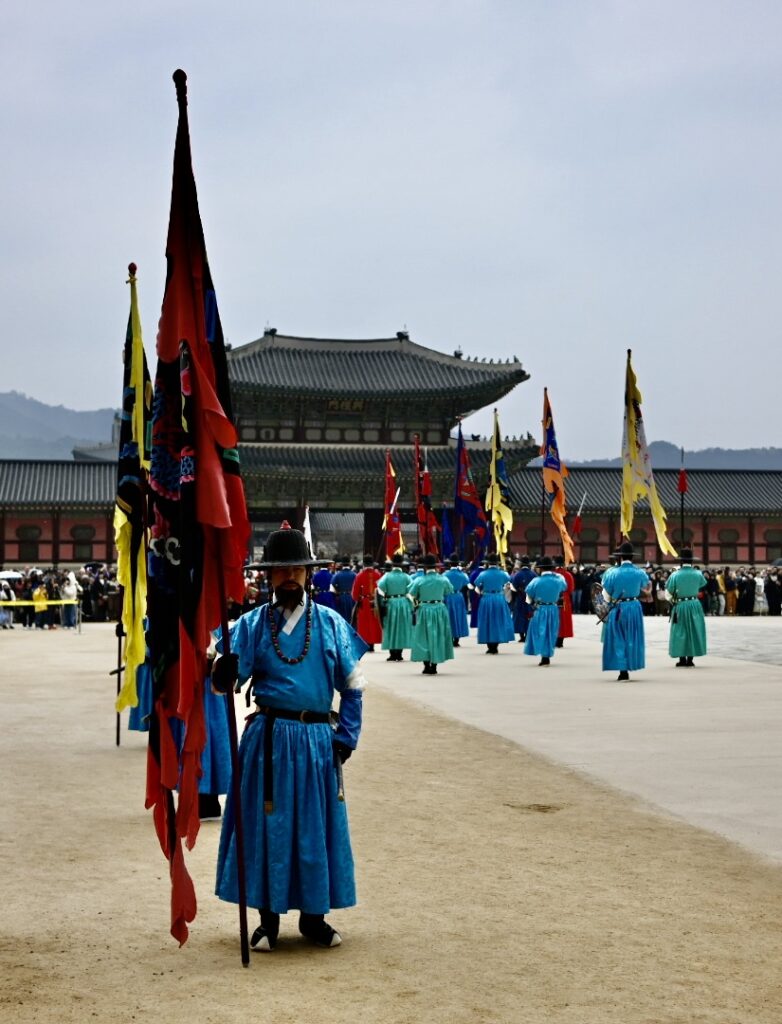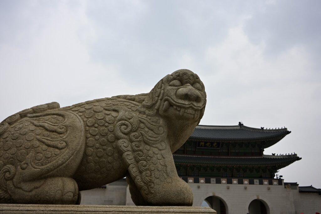 Sally asks if there’s anything else we want to visit, and our son mentions that he would love to see a Haechi statue – a Korean mythical guardian figure representing justice, integrity, and protection against natural disasters. Our guide seems impressed that he’s aware of what they are – and takes us off to Gyeongbokgung Palace.