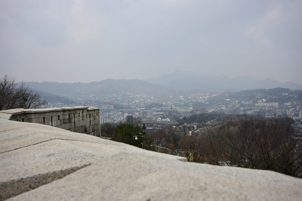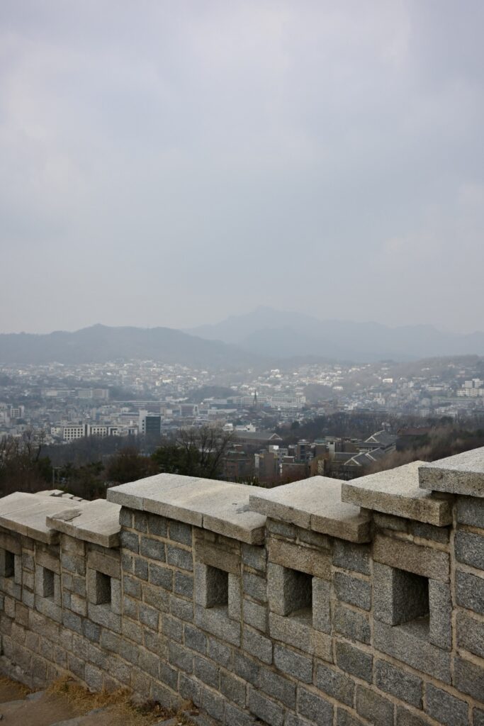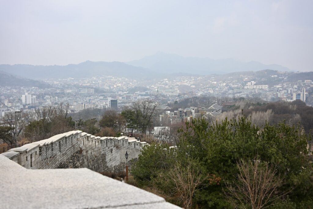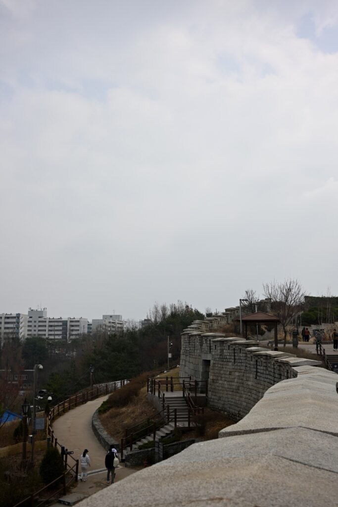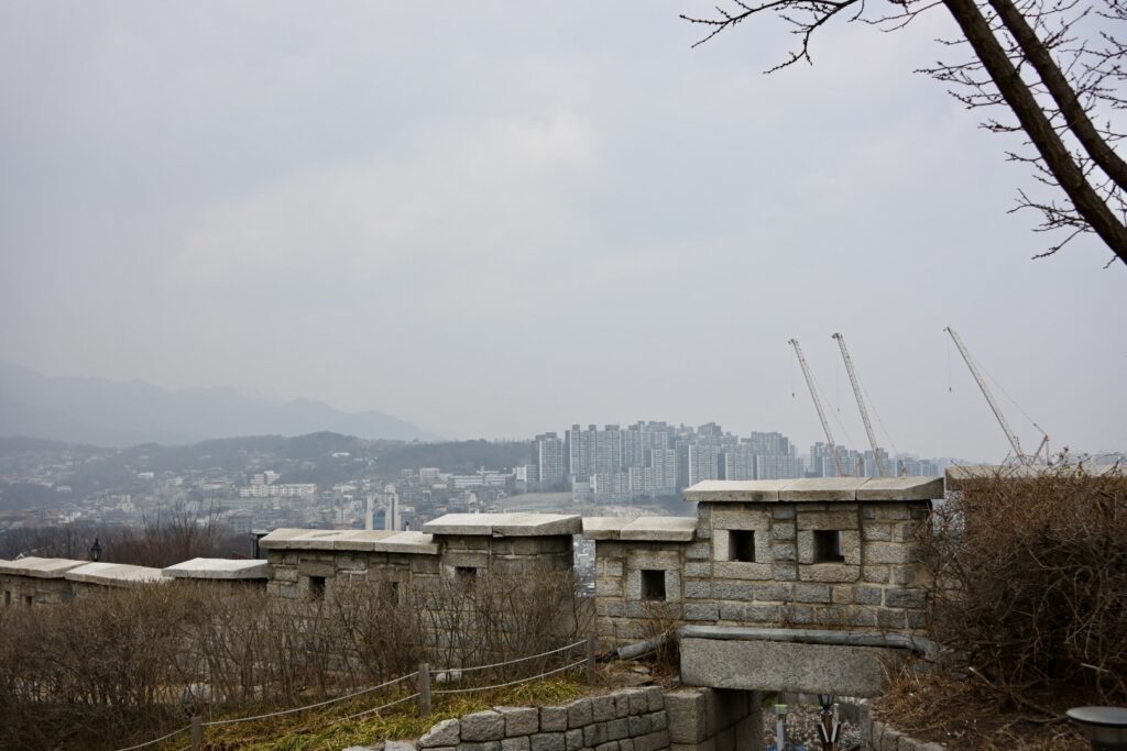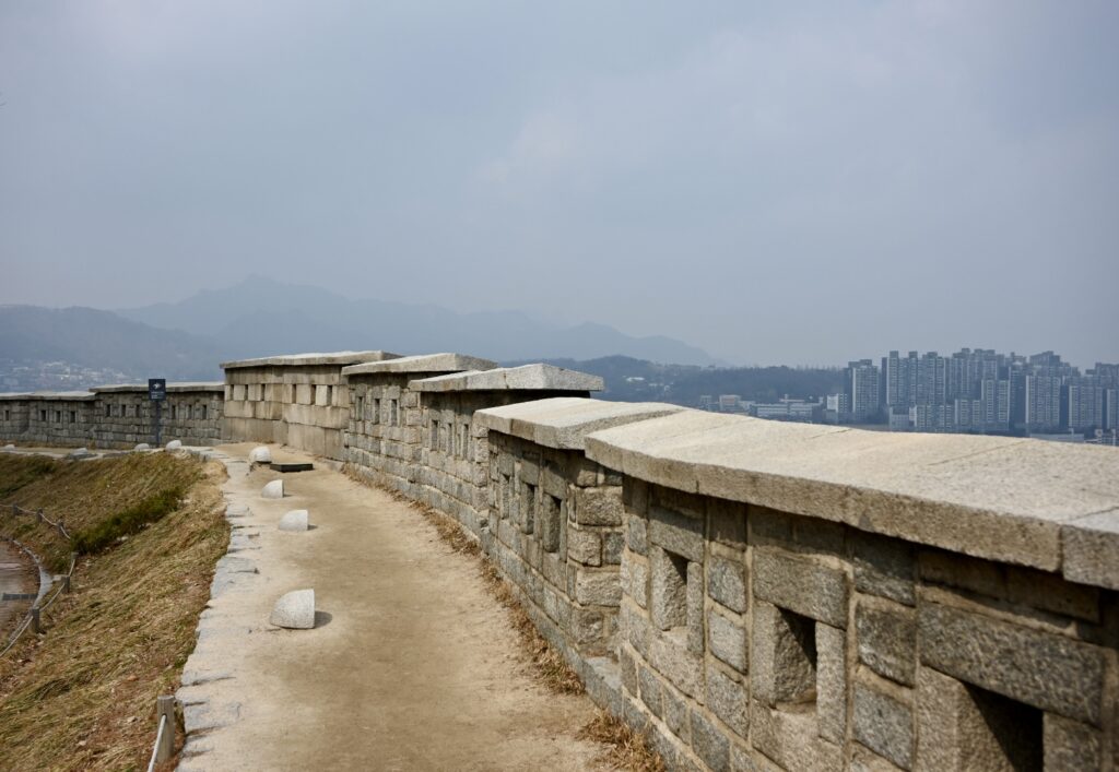 The Seoul City Wall was built in the 14th century to defend against invasion from the Chinese and Japanese. It is absolutely inspired by the Great Wall of China.