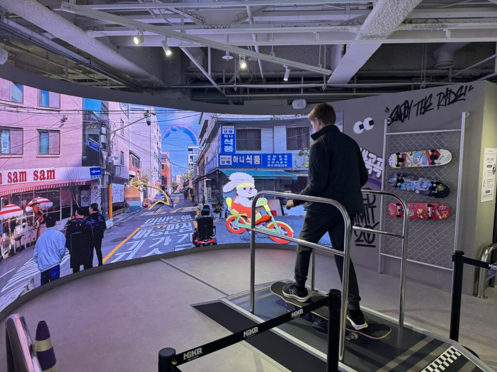 We have even more fun with the upstairs floor, which includes a karaoke room as well as simulators for DJs, skateboarders, street artists, food influencers, and more.