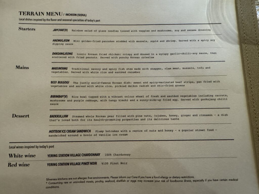 Back aboard the bus to return to Incheon. We once more luck out with traffic, and arrive roughly 75 minutes after departing Seoul – which means we are back in time for trivia. (We can consider ourselves quite fortunate as yesterday’s trip to Seoul ended with a long wait at the gangplank – during which one passenger began screaming at the terminal staff. Not a good look.)