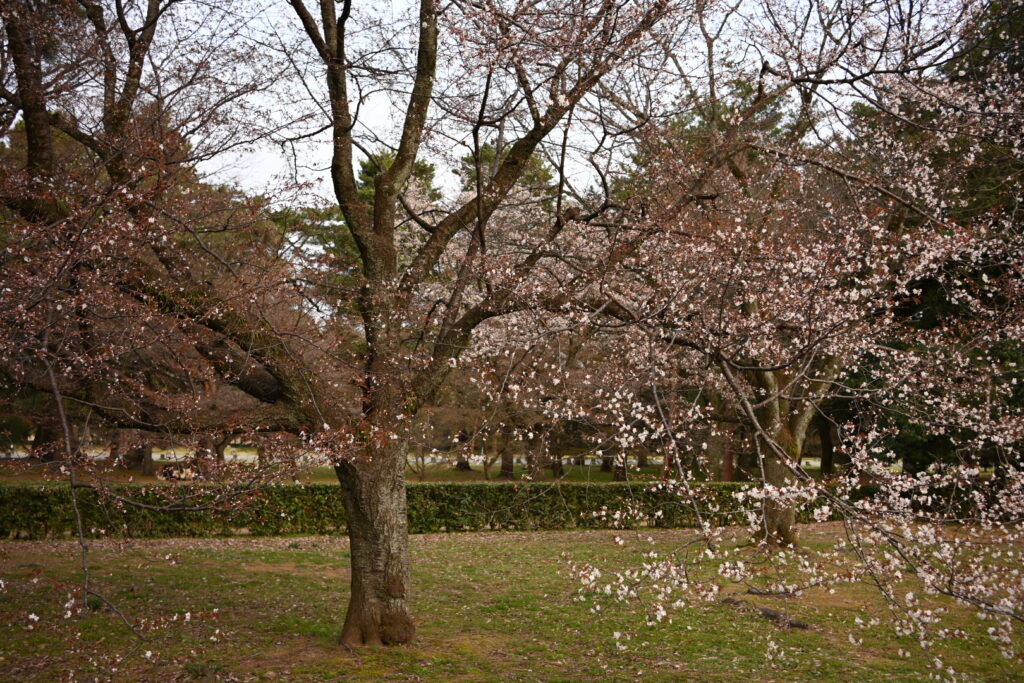 Kyoto is supposed to be roughly four days behind Tokyo in terms of sakura blossoms, but these trees look to be roughly on par with those we saw before we left. That means we should be right around peak.
