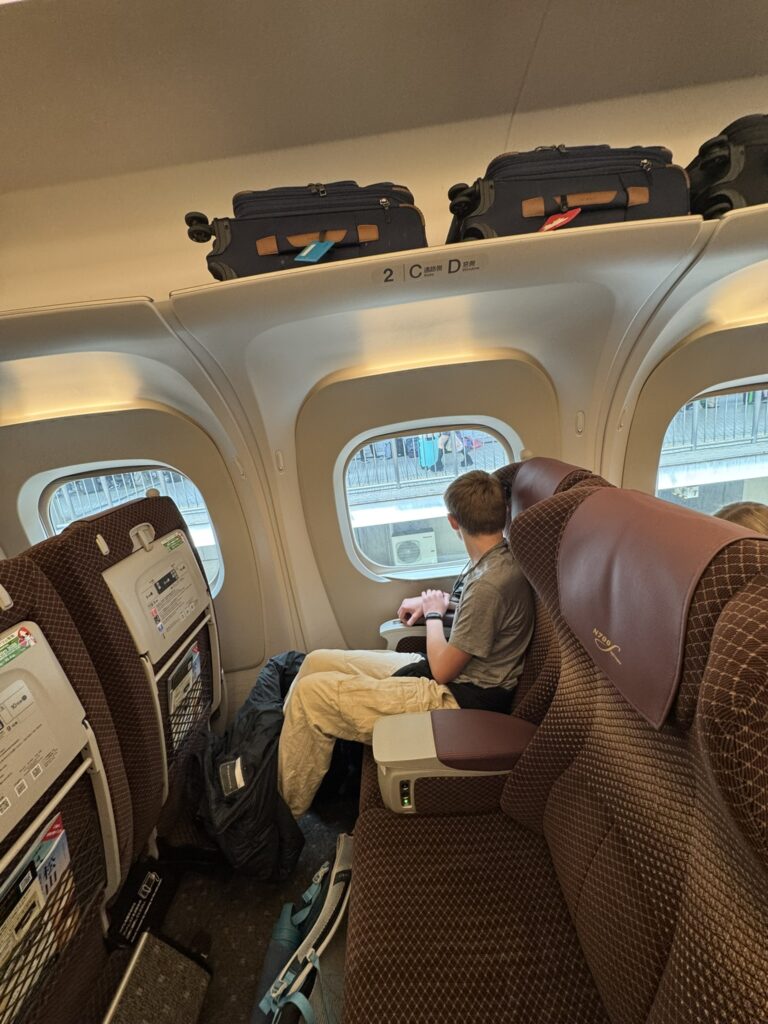 There are also real limits as to how much luggage you can bring onto the shinkansen trains – and typically it’s only the last row of seats per train car with room for ‘oversized’ baggage (read: normal checked baggage sized). And even then, there’s a limit of one bag per person – so it wasn’t an option for us regardless. (Unless we somehow managed to dress our duffle bag up as a person and buy a seat for ‘him.’ And we shall name him George.)
