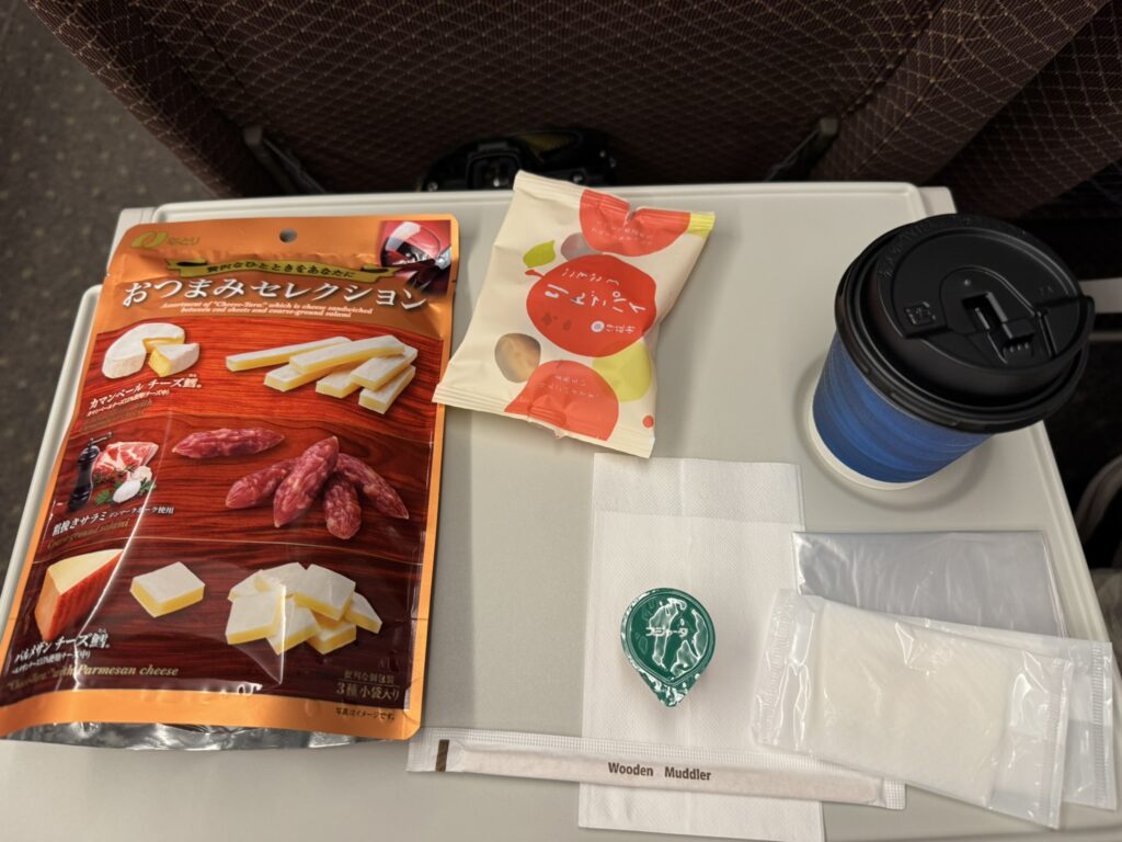 It’s a perfectly adequate light snack – though if I were to travel by shinkansen again, I’d likely pay closer attention to some of the excellent bento boxes I see being opened by more seasoned passengers. (Guess our collection of Kit Kats and other assorted treats will have to do.)