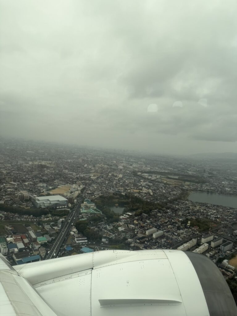 It’s a 50 minute drive to Osaka Itami Airport. Our daughter manages to sleep during much of the trip.