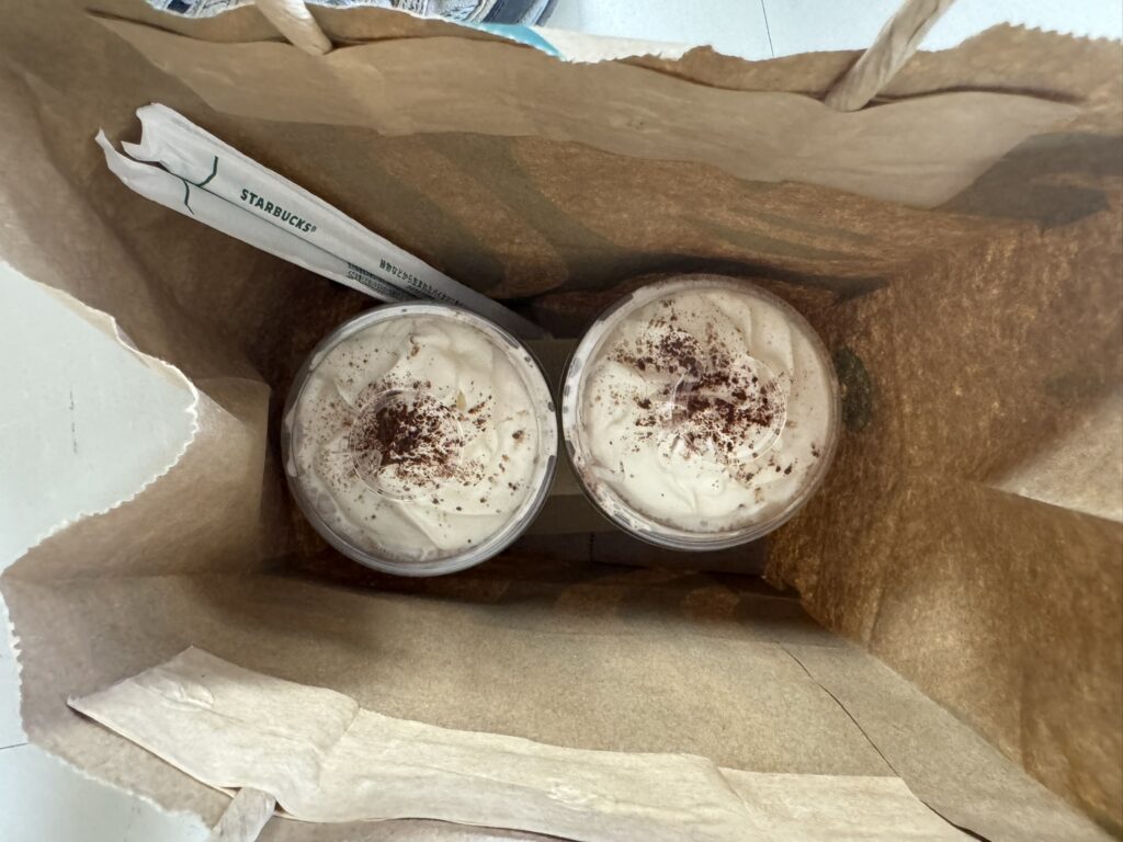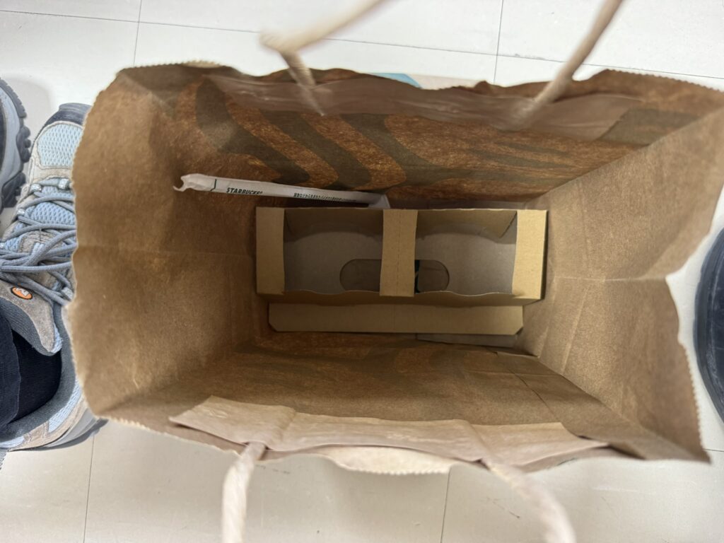 I spend a moment lost in translation as I attempt to ask for those little cardboard drink trays. But when I ask for a tray, I’m given a cafeteria tray that clearly isn’t meant to leave the dining area. They offer bags, and I’m skeptical – but they genuinely have bags that properly carry drinks: