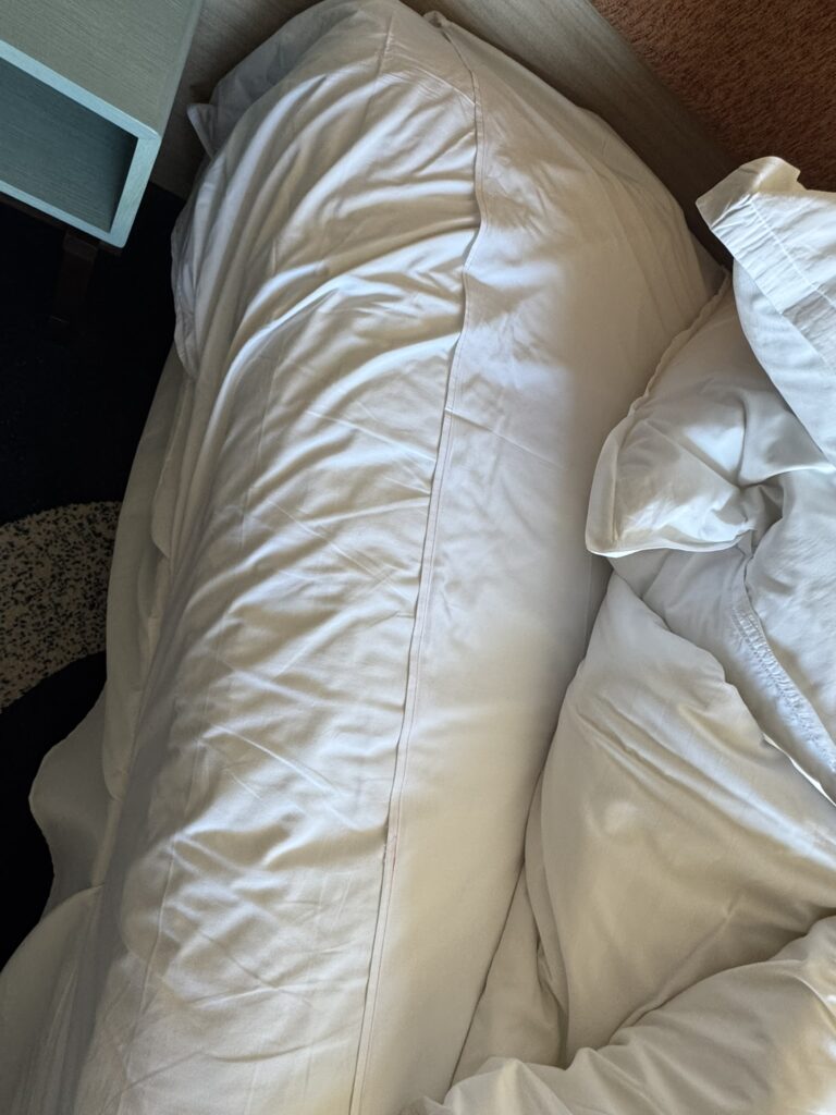 I try to explain exactly what we want but there is a significant language gap – Chinese to English in this case, and Google Translate struggles to convey the concept of: “I would like you to change the sheets so that each bed has its own set of sheets, but please keep the single king-size top blanket as it is.”