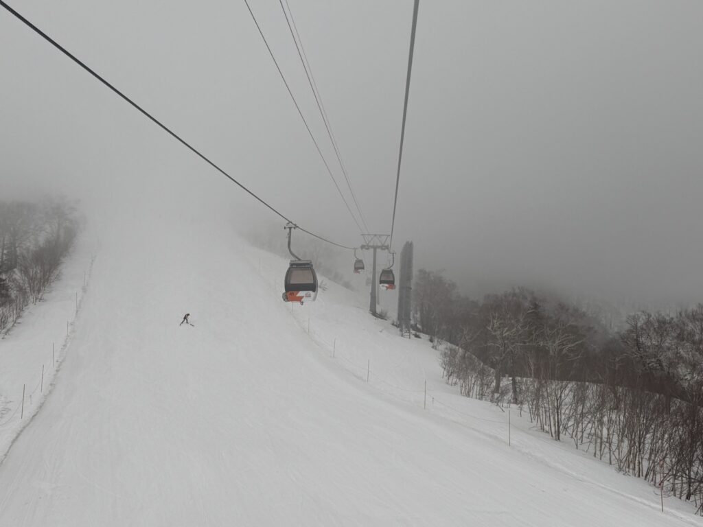 And then out to gondola. There’s a line for the Nagamine quad lift, so I take the Kiroro gondola instead. The fog soon gets worse: