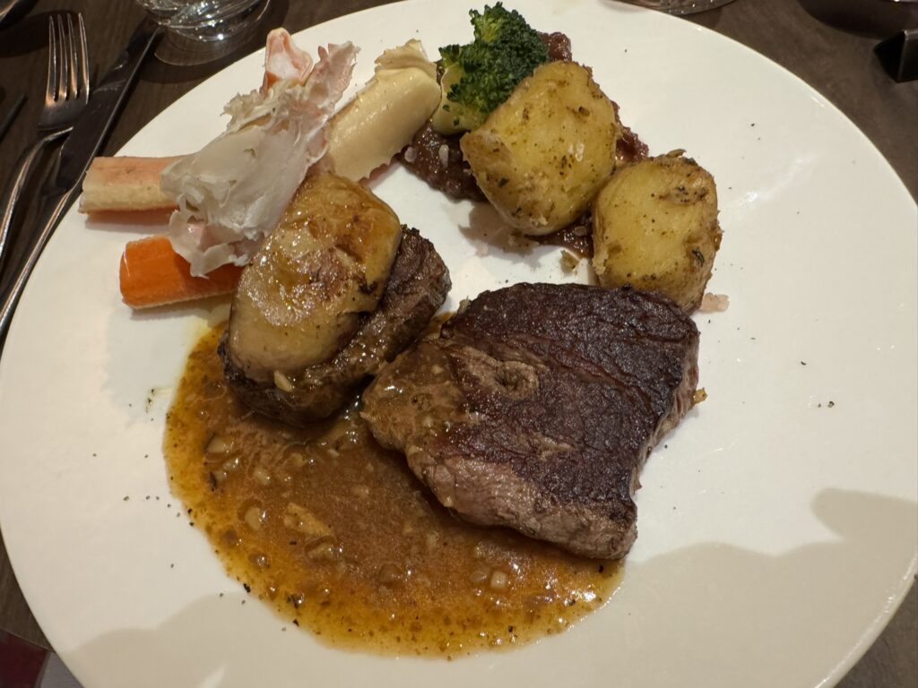 Time for dinner – steak Rossini tonight, complete with foie gras and with some Hokkaido crab thrown in for good measure.